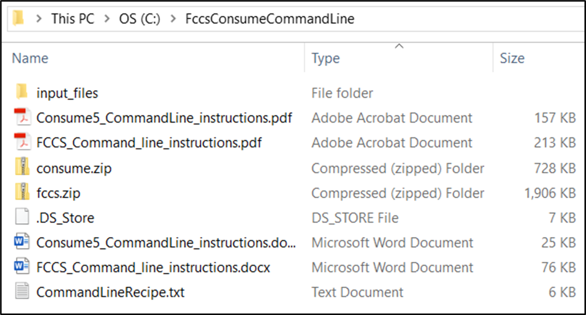 Contents of extracted FccsConsumeCommandLine.zip file