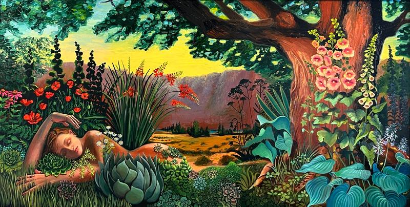 Mary Mann is a Tacoma-based public mural artist and studio painter. Roots + Bones will be on display at the Miller Library from April 2 to 27. You can meet the artist during the 2026 Garden Lovers' Book Sale on April 10 and 11 (see below).